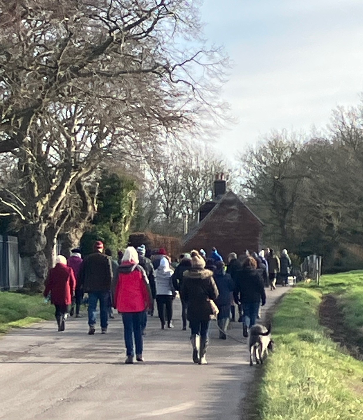 After the aborted walk last year due to rain and 50mph winds, the weather was kind to us and thankfully it was a dry and calm day on the first day of 2026. Over 50 walkers (and lots of dogs) enjoyed a 2.2 mile along tracks and roads, with no fields or stiles this year.